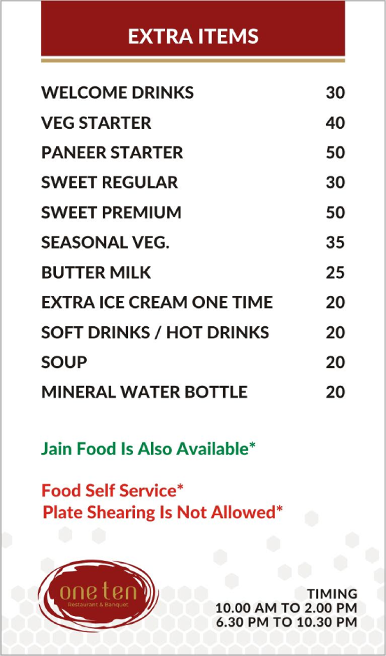 One-Ten Welcomes you with 10 delights for you! It's a Restaurant one More, yet with fun More!
